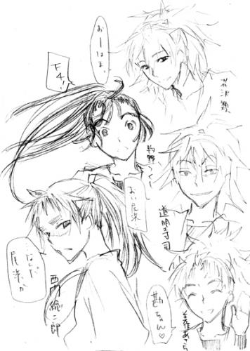 「おーはまっ」っていう雷蔵がひたすら描きたくなって勢いで5人ともらくがきしてみたけど、いけめんモテモテ設定を全く生かせてない竹谷がやっぱり大好きです。あ、動物にモテるの?